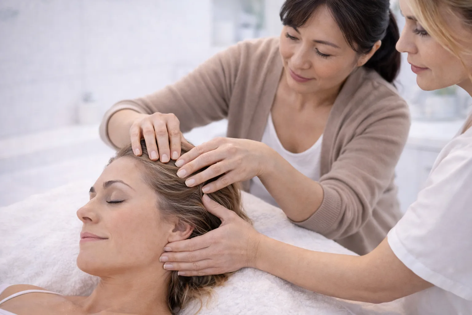 Tauchen Sie ein in die Welt der Entspannung. Sie lernen die Kopfmassage nach asiatischer Heilkunde, kombiniert mit intensiver Kopfhautpflege. Dieser Trend ist aktuell stark gefragt und bietet Ihnen eine attraktive Gewinnspanne bei geringem Materialeinsatz.